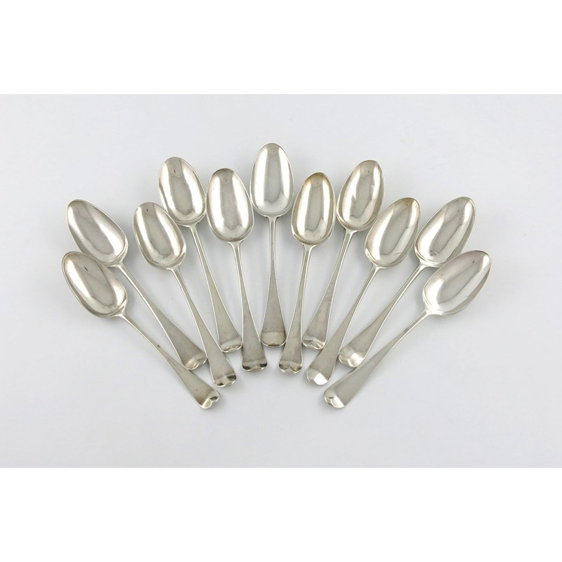 A collection of eleven 18th century silver Hanoverian pattern tablespoons,