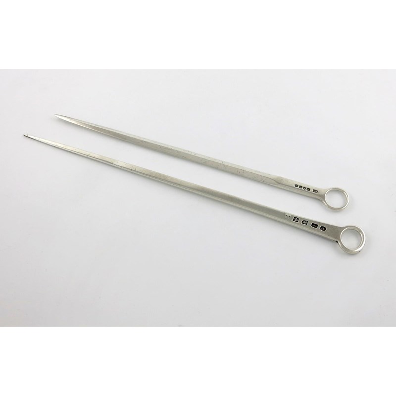 tapering form, plain ring handle, length 37.4cm, plus a George IV silver meat skewer, by William Eaton, London 1826, of similar form, length 33cm, approx. weight 7.8oz. (2)