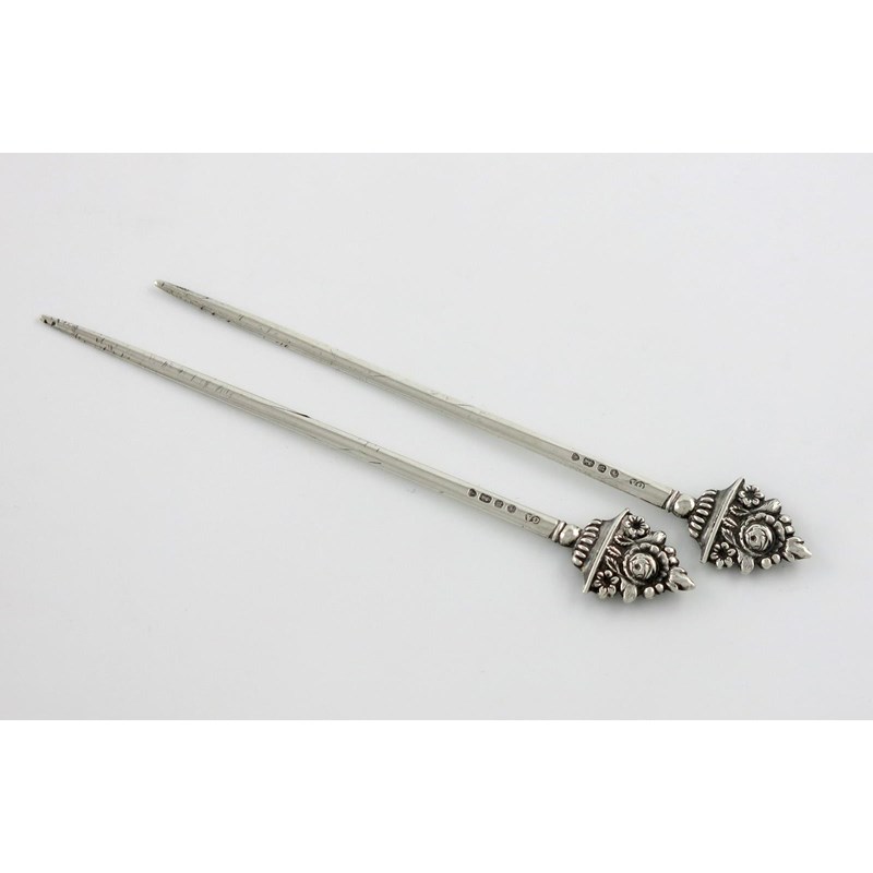 the terminals with foliate finials, length 13cm, approx. weight 0.5oz. (2)