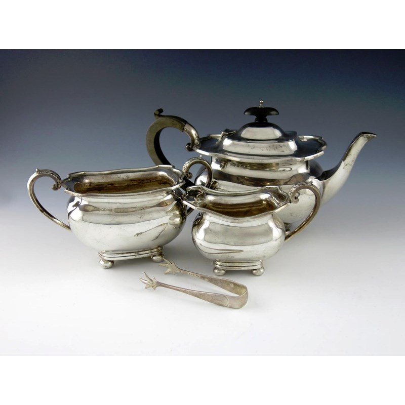 A three-piece silver tea set