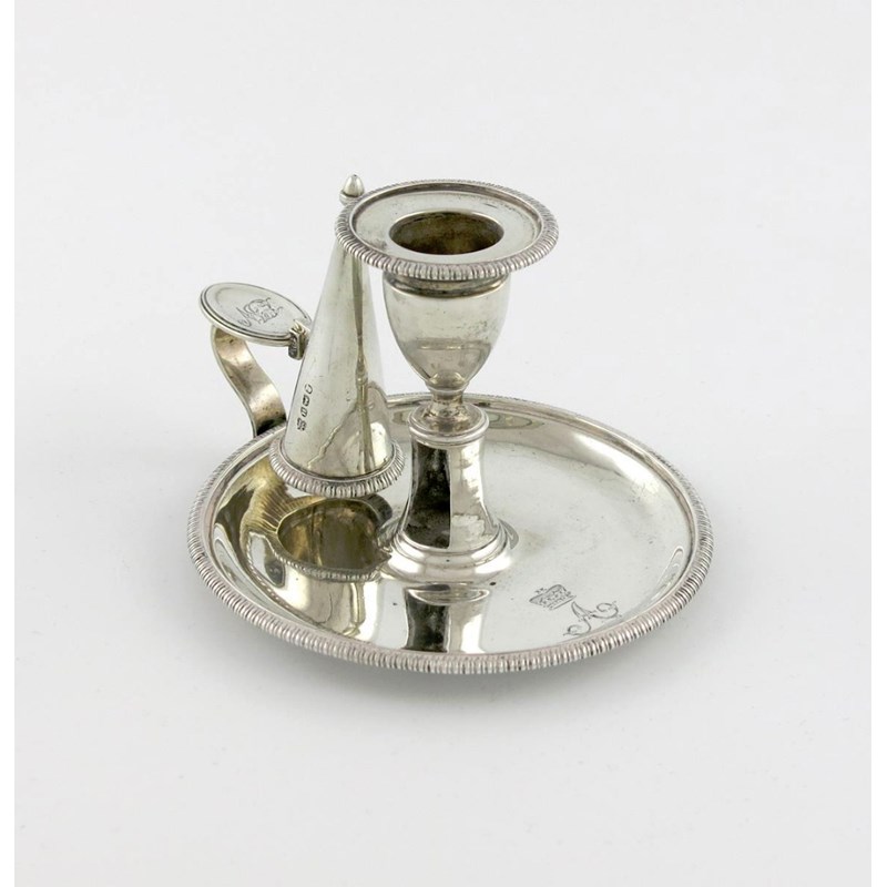 circular form, gadroon borders, with a conical snuffer, engraved with a monogram and crowned 'A', diameter 12.5cm, approx. weight 7.4oz.