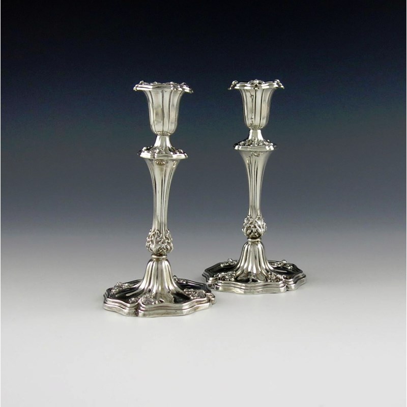 A pair of early Victorian silver taper sticks