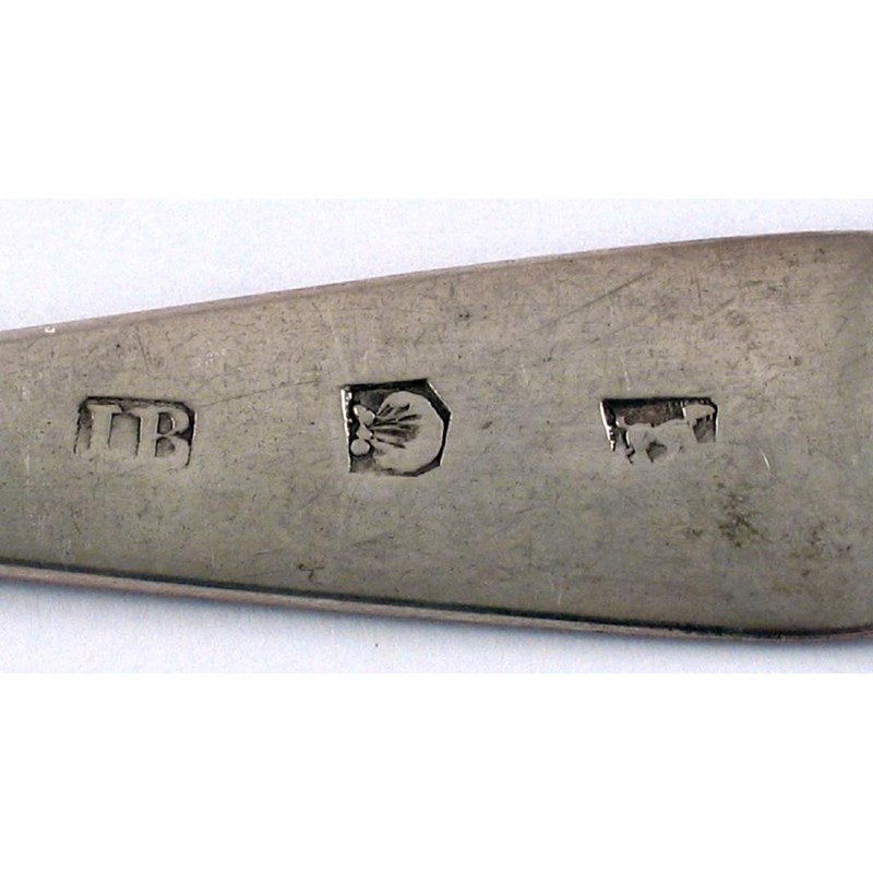 A George III Scottish provincial masking spoon, initialled possibly by Jmaes Baron, Aberdeen (IB Sparron, dog).