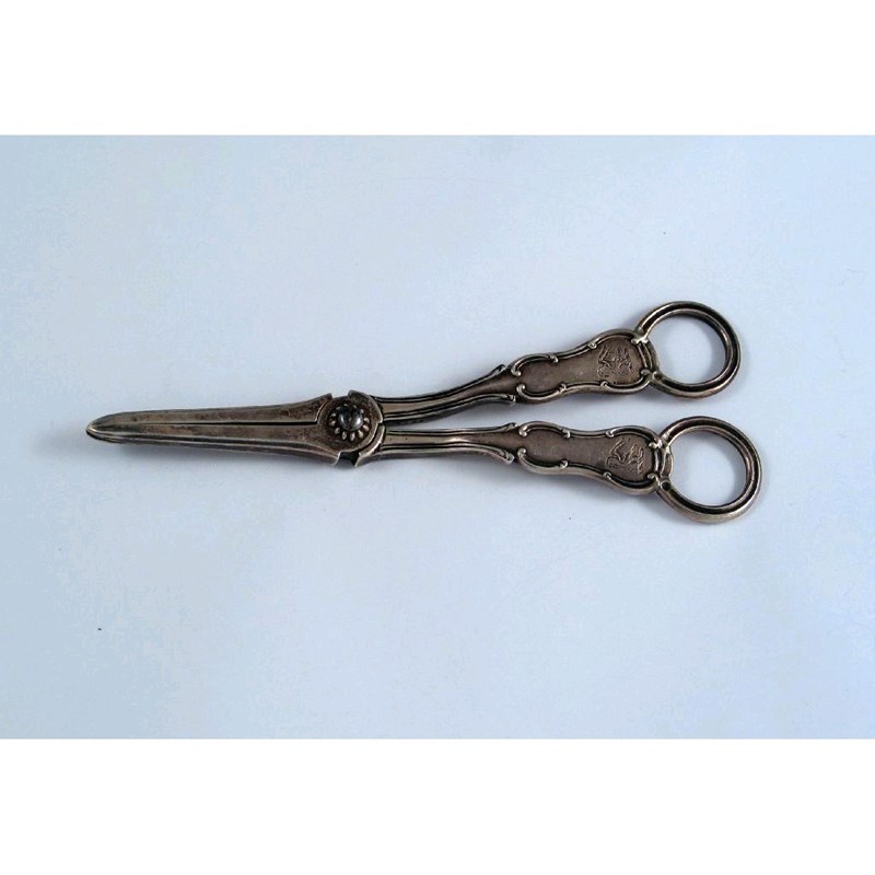 A pair of Victorian grape shears, in a variant of Princess number 1 pattern, double crested by George Adams, London 1846, 6.8in, (17.4cm) long, 4oz.