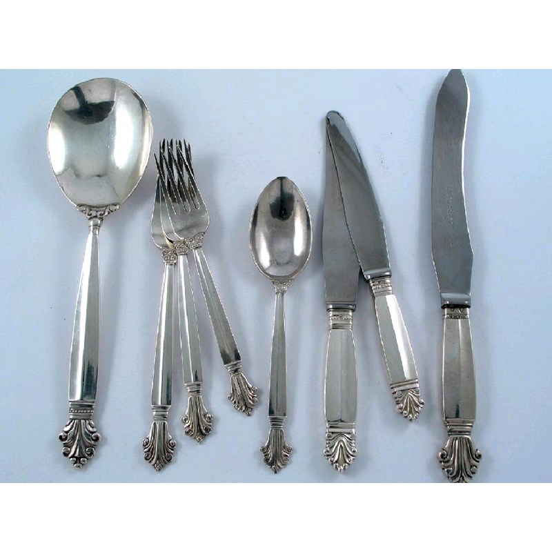 A quantity of Danish acanthus pattern flatware and cutlery, comprising of nineteen assorted knives (stainless steel blades), twenty assorted forks, fourteen assorted spoons and a carving knife and fork (with steel blade), mixed dates, the majority with import marks, 54oz weighable silver. (55)