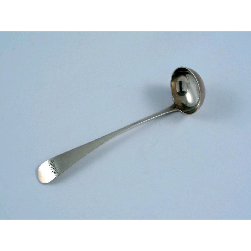 A George III Scottish provincial toddy ladle, initialled "RMM", by David Manson, Dundee (DM, pot of lilies, DM), c.1810, 0.75oz.