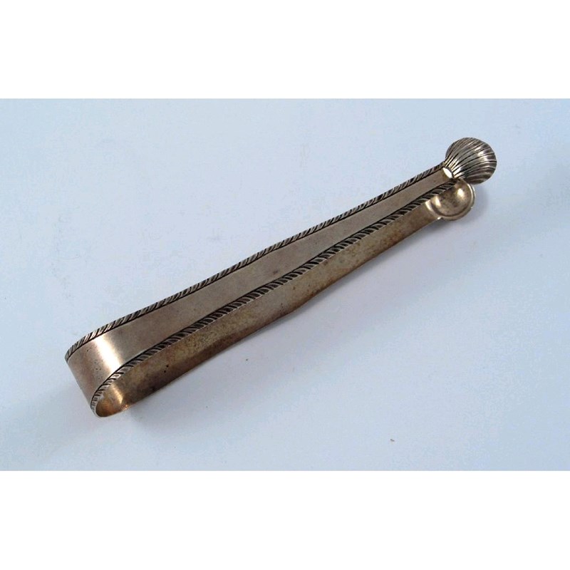 A pair of George III unascribed sugar tongs, with fluted circular bowls and feather edging, initialled 'I.H', maker's mark only, struck twice ('LB' over 'II'), probably provincial, c.1775, 1oz.