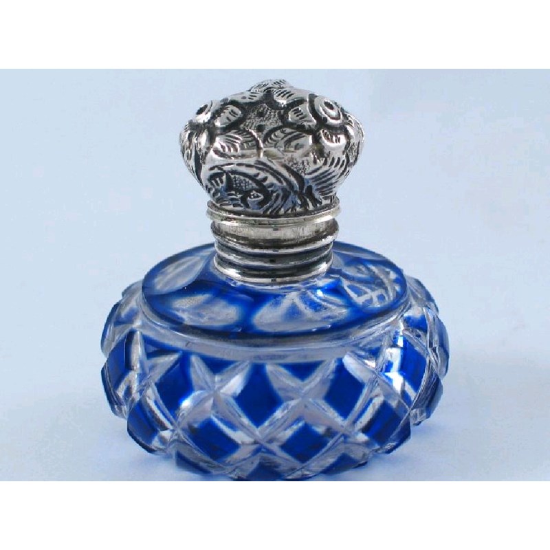 Another, flashed with blue with an embossed hinged cover and a mullet pierced grill, unmarked, 1.75in (4.5cm).