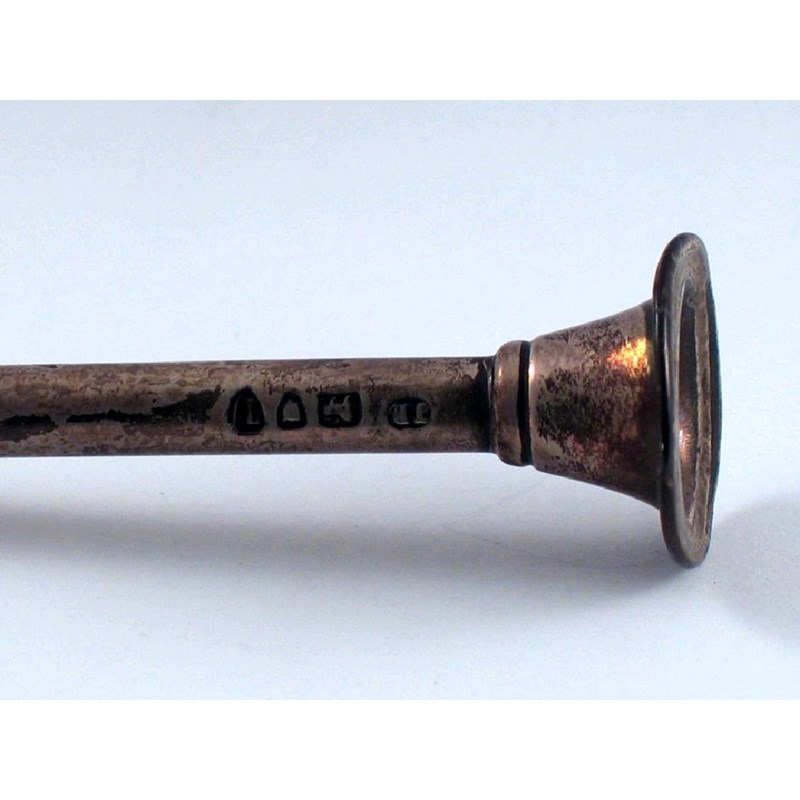 A late Victorian tubular, candle douter, with a flared mouthpiece, by Jane Brownett, London 1894, 15in (38cm) long, 1oz.