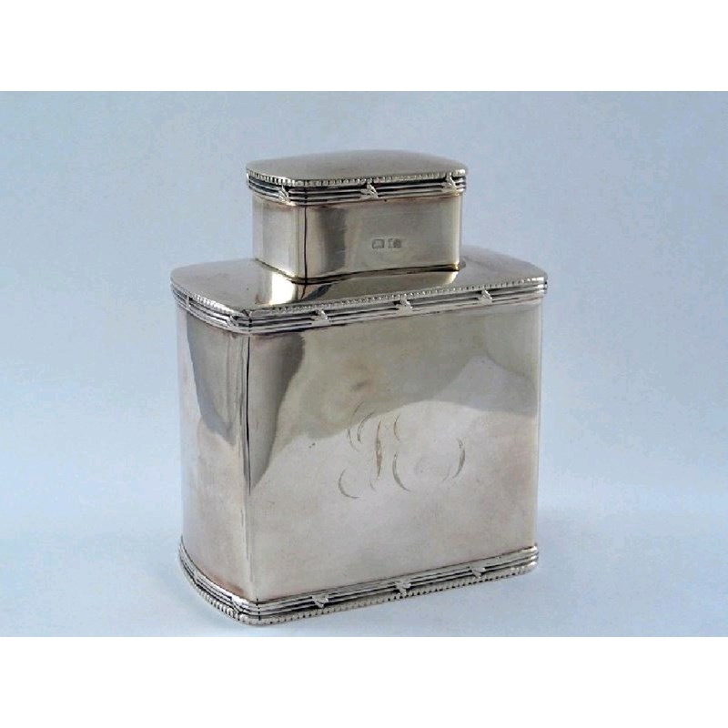 An Edwardian oblong tea caddy, with a pull-off cap, by Deakin and Francis, Birmingham 1905, 3.5in (9cm), 3.2oz.