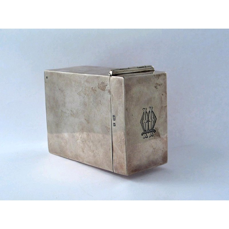 A late Victorian/Edwardian playing cards box, containing two packs, monogrammed, by Messrs Hutton, Birmingham 1901, 4in (10cm) high.