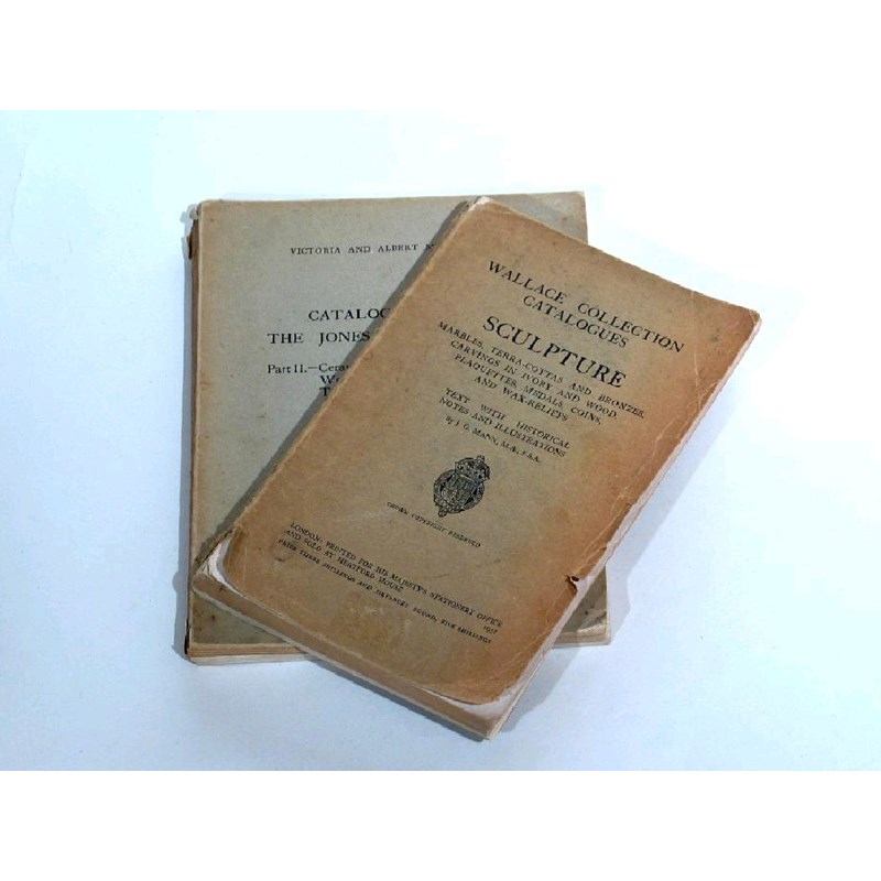 Two pre-war catalogues: The Wallace Collection catalogue of Sculpture (marbles, terracottas and bronzes, carvings in ivory and wood, plaquettes, medals, coins and wax reliefs) HM"O 1931 and The Jones Collection, Part II, ceramics, Ormolu, Goldsmith's work, enamels, sculpture, tapestry, books and prints. V&A 1924. (2)