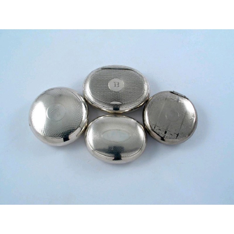 A plated example and three other examples, all with engine turned decoration, mixed makers and dates, 7oz weighable silver. (4)