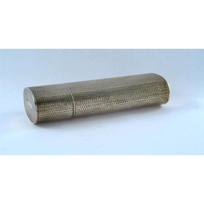 An Early Victorian silver gilt provincial cheroot case, of tubular oval form with engine turned decoration and a hinged cover, by James Barber and William North, York 1838, 5in (12.5cm) long, 3.5oz.