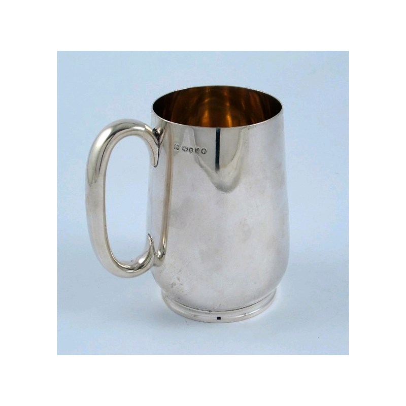 A Victorian mug with a c-shaped handle, a collet foot and a gilt interior, by R. Martin & E. Hall, London 1870, 5in (12.6cm) high, 11oz.