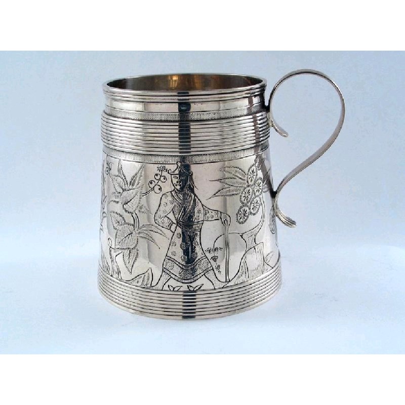 A modern reproduction of a James II Chinoiserie mug, by Carrington and Company, London 1911, 3.8in (9.7cm), 8oz.