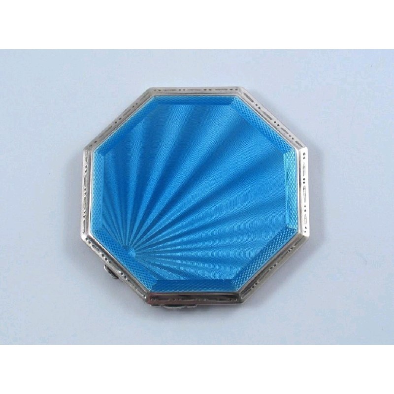 A modern octagonal compact, with a blue enamel cover, Birmingham 1940, 3.2in (8cm) wide.
