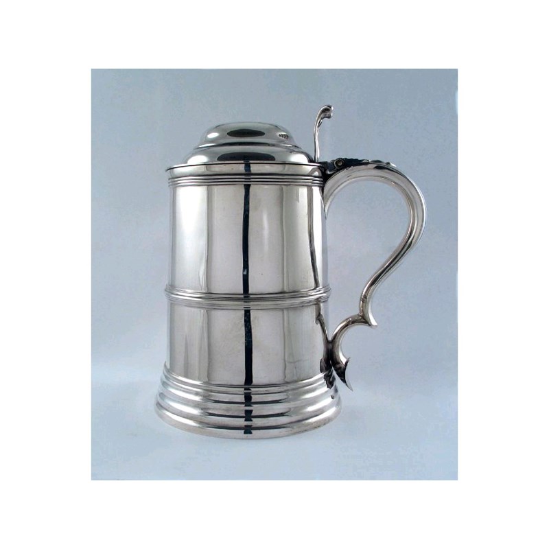 A late Victorian tankard, with a domed cover, a shifted base and a moulded girdle, the scroll handle with a volute thumbpiece, by H Atkin, Sheffield c.1895 (date letter partially worn), 7.75in (20cm), 23oz.