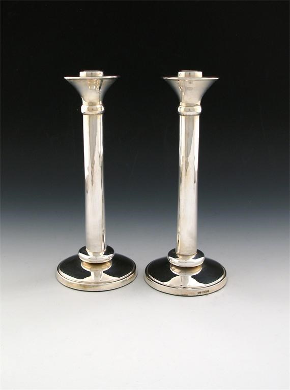 the slender columns, spread circular capitals, on raised circular bases, filled, height 23.5cm. (2)