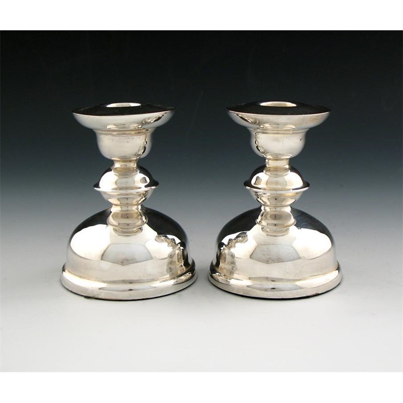 on raised circular bases, knopped stems, plain urn capitals, filled, height 10cm. (2)