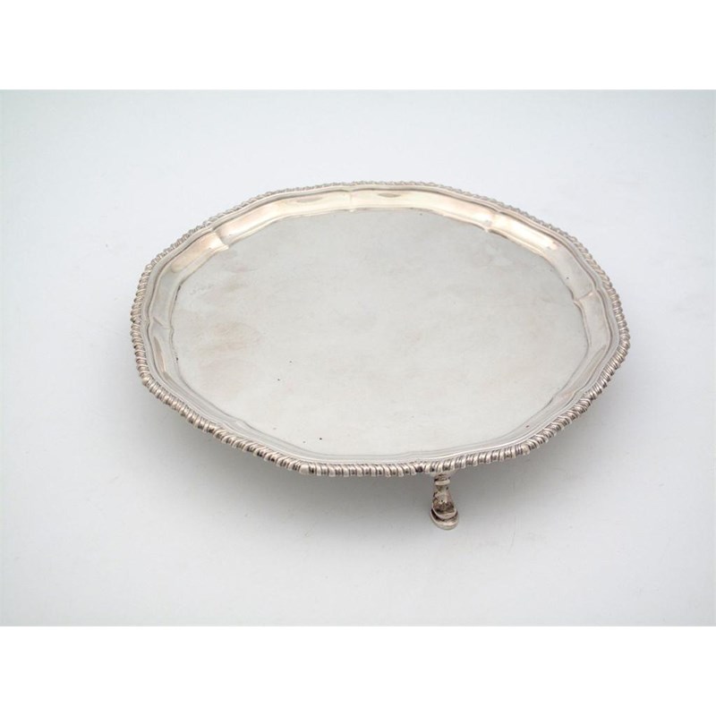 circular form, gadroon border, on three hoof feet, diameter 20.2cm, approx. weight 8oz.