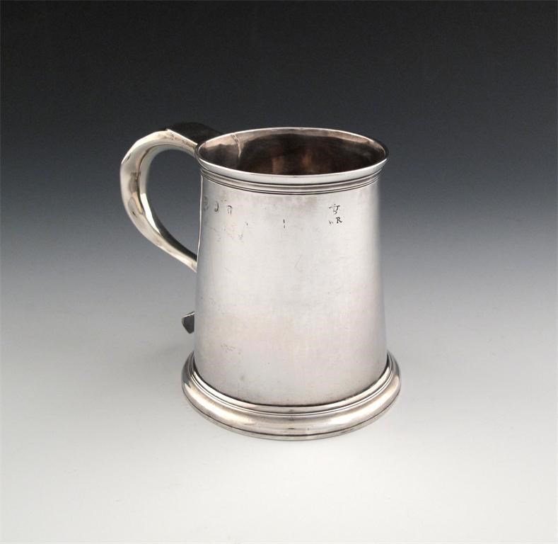 tapering circular form, scroll handle, also marked with a later imperial measure WR crowned, height 11.3cm, approx. weight 10oz.
