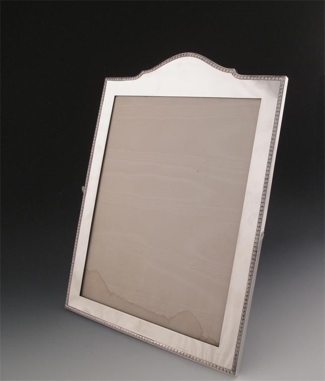 upright arched rectangular form, swag border, easel back, height 46cm.