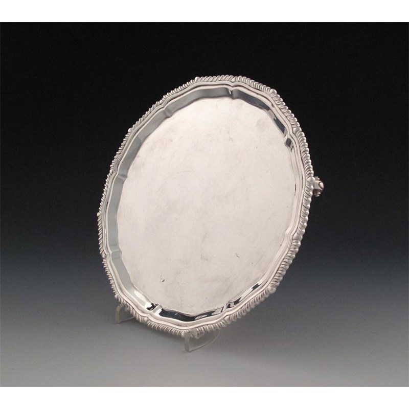 circular form, gadroon border, on three gnarl feet, diameter 21cm, approx. weight 12oz.