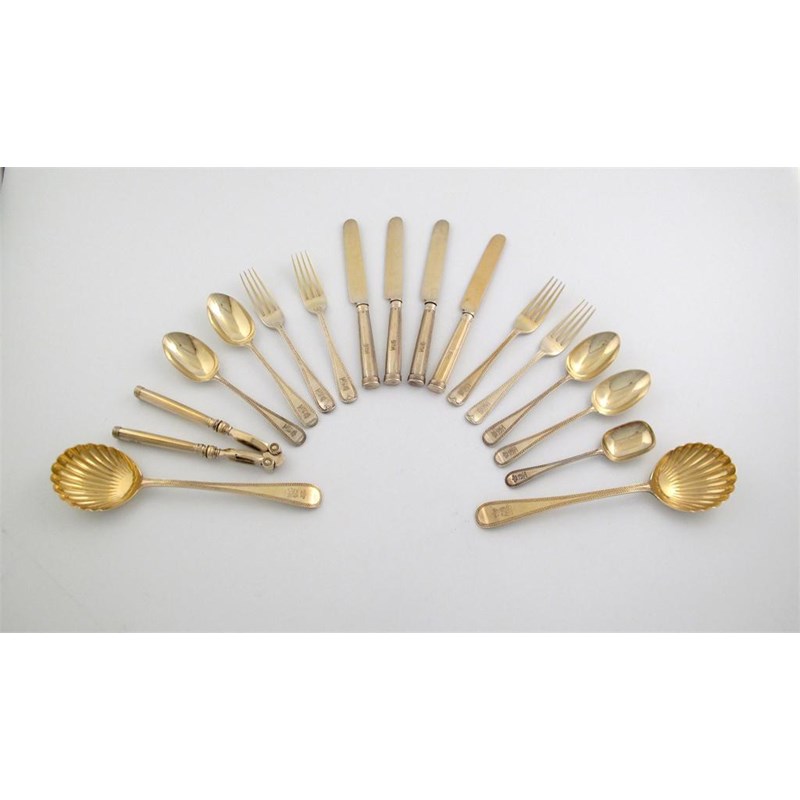 A good Edwardian silver-gilt Bright-cut dessert service for thirty,