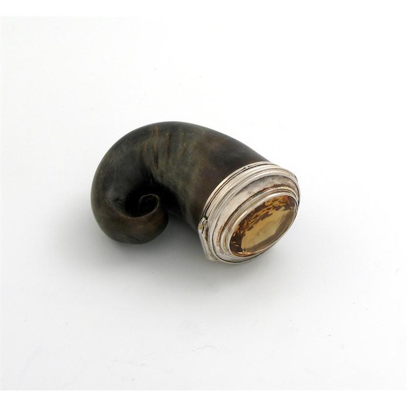 the hinged cover set with a yellow citrine, plain mounts, length 7.8cm.