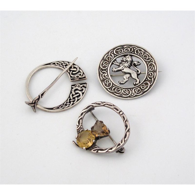 comprising one with pierced Celtic decoration, by John Hart of Iona, and two by Robert Allison, Iona, with Glasgow hallmarks. (3)