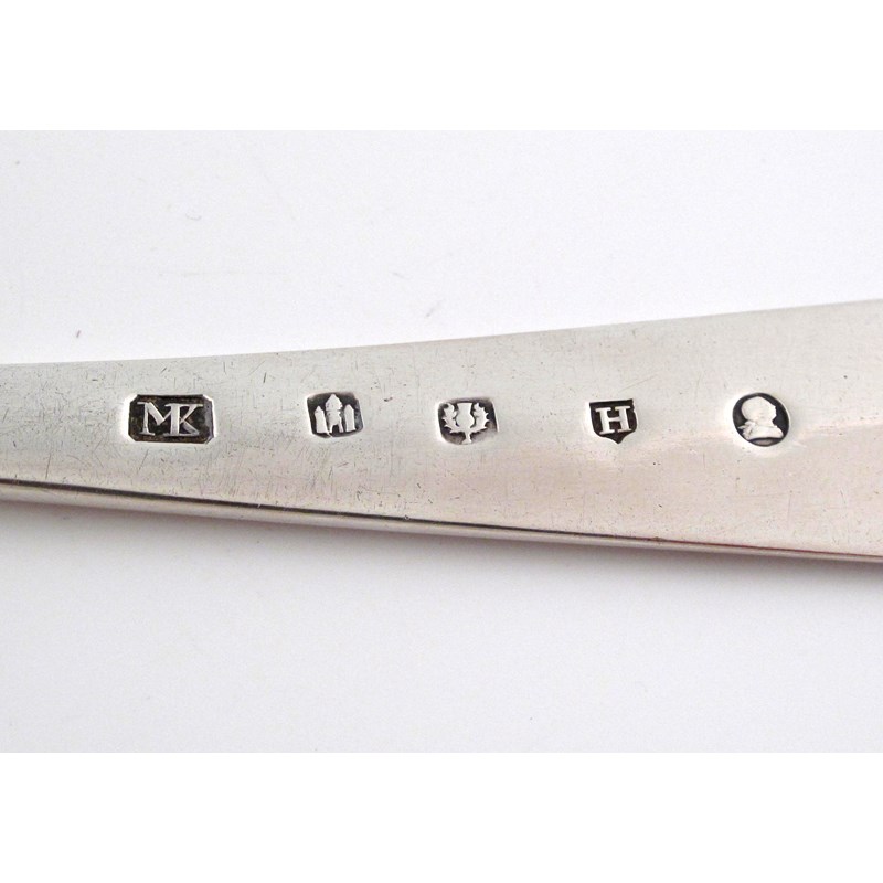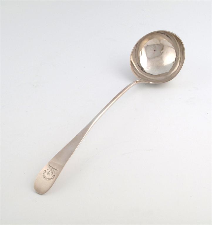 A George III Scottish silver Old English pattern soup ladle,