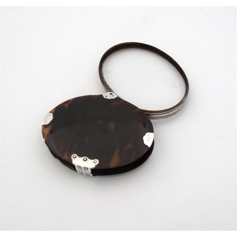 A late 18th century silver mounted tortoiseshell magnifying glass,