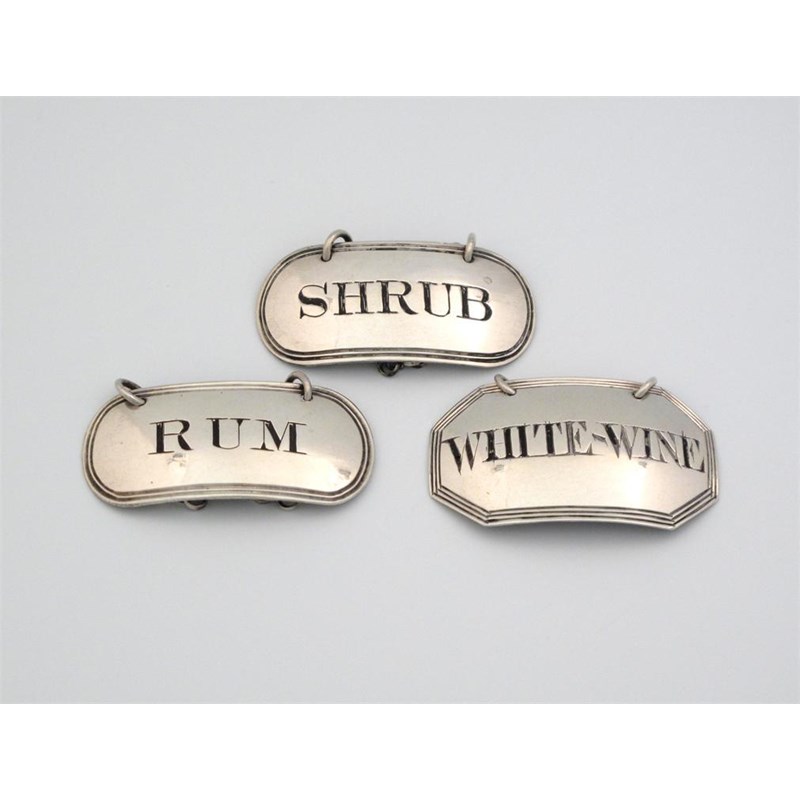 plus a George III silver wine label, by John Hutson, London 1793, canted corners, incised and blackened 'WHITE-WINE',