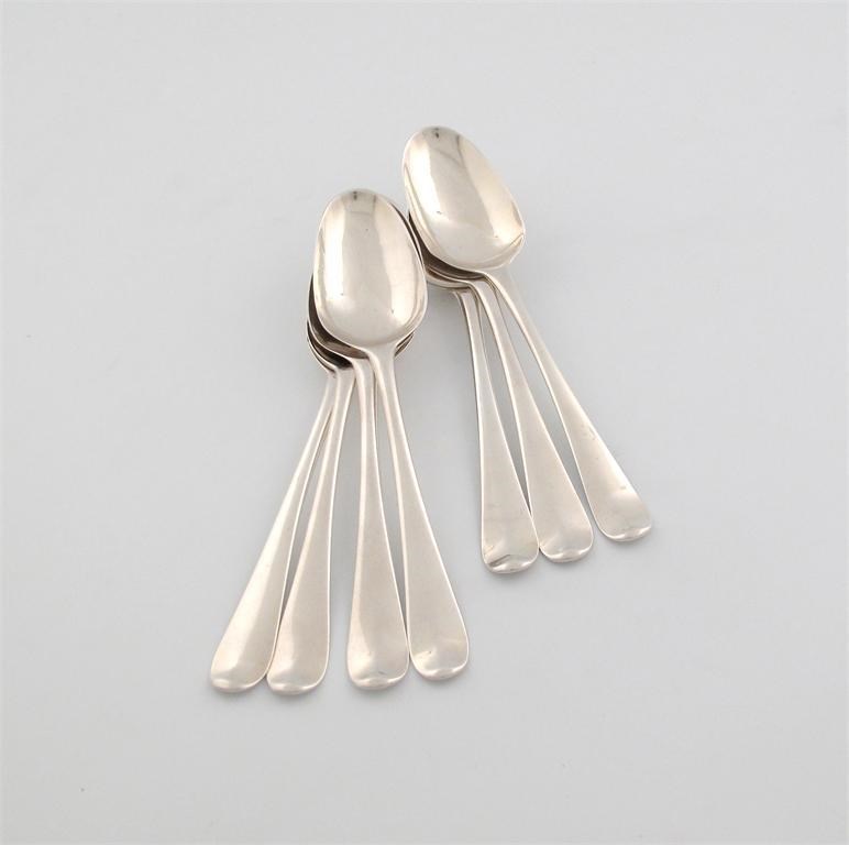 A set of seven George III Hanoverian pattern dessert spoons,