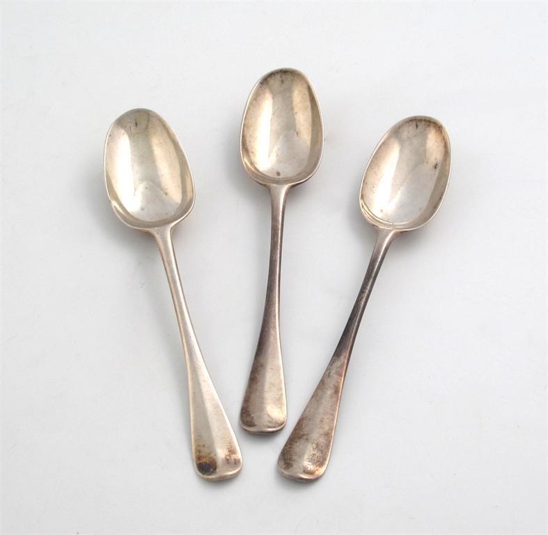 A set of three George I Britannia standard silver Rat-tail pattern teaspoons,