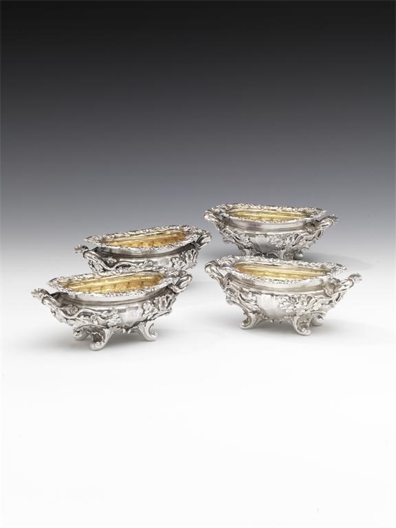 A fine set of four George III silver salt cellars,