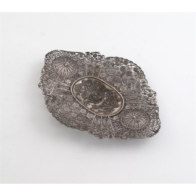 shaped oval form, pierced scroll decoration, length 17.2cm.