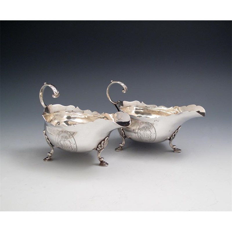 oval form, wavy edge border, leaf capped scroll handle, on three shell capped hoof feet, inscribed 'Presented to the Rev. Samuel Andrew, M.A, Head Master of The Truro Grammar School by his pupils as a token of their affectionate regard, September 18th 1855', the reverse side with a crest and motto, length 17.5cm, approx. weight 15oz. (2)