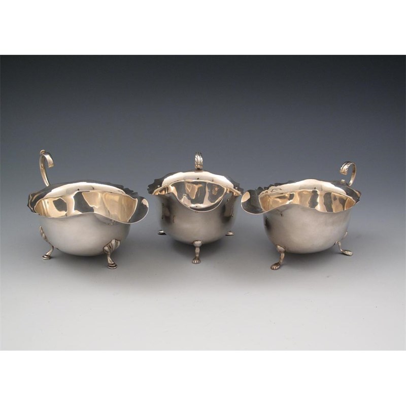 A pair of silver sauce boats,