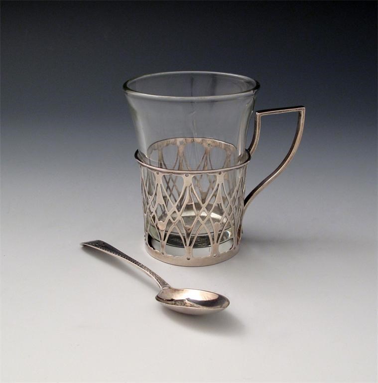 An Edwardian silver Art Nouveau tea glass holder,