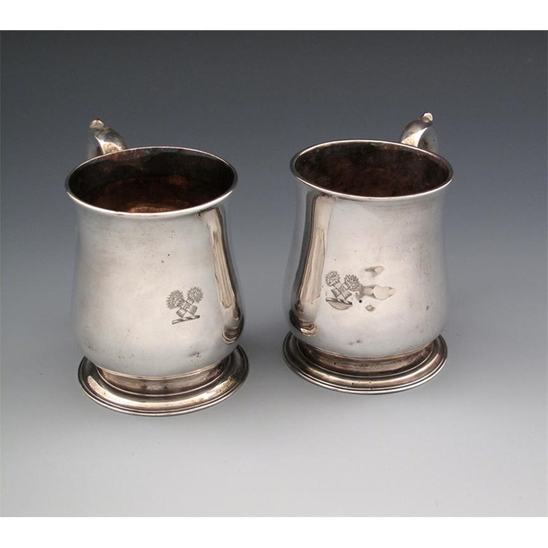 A matched pair of George II/ III silver mugs