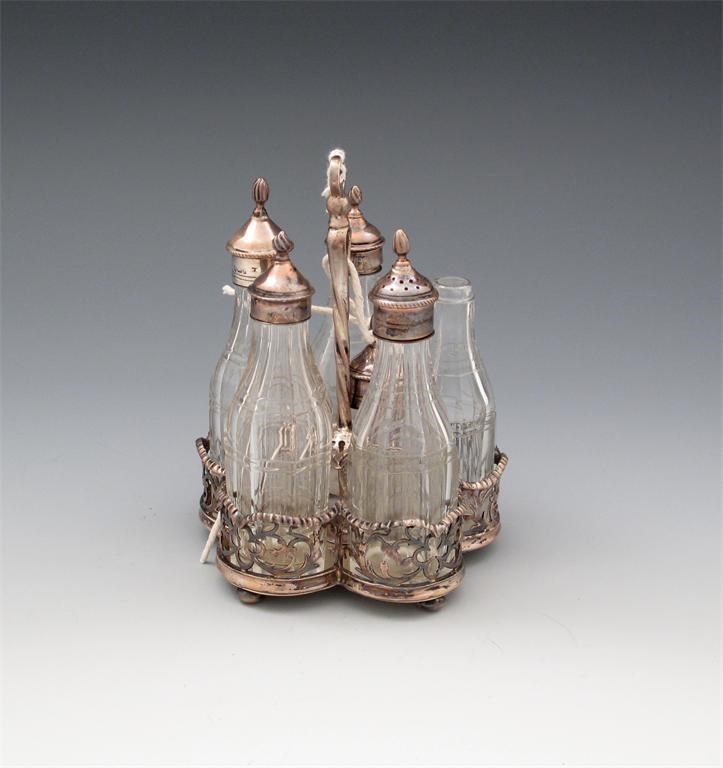 An early 19th century silver five-bottle cruet frame