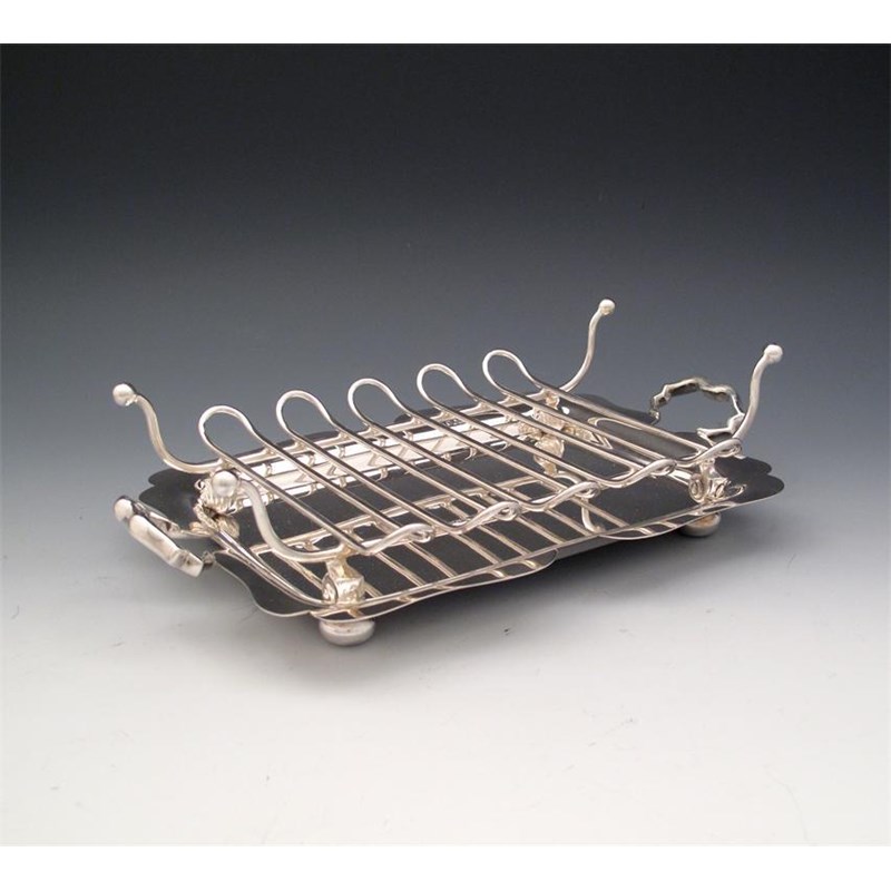 rectangular form, wavy edge border, with a wirework frame, length handle to handle 30cm, approx. weight 26oz.
