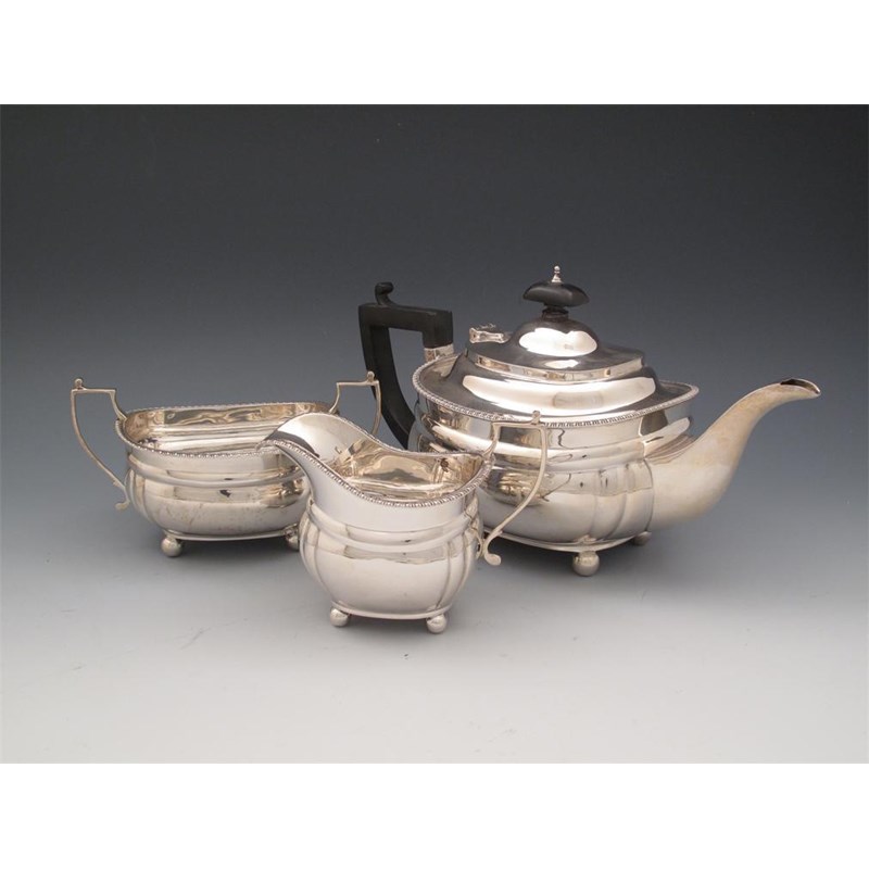 oblong bellied form, scroll handle, gadroon border, on four ball feet, approx. weight 30oz. (3)