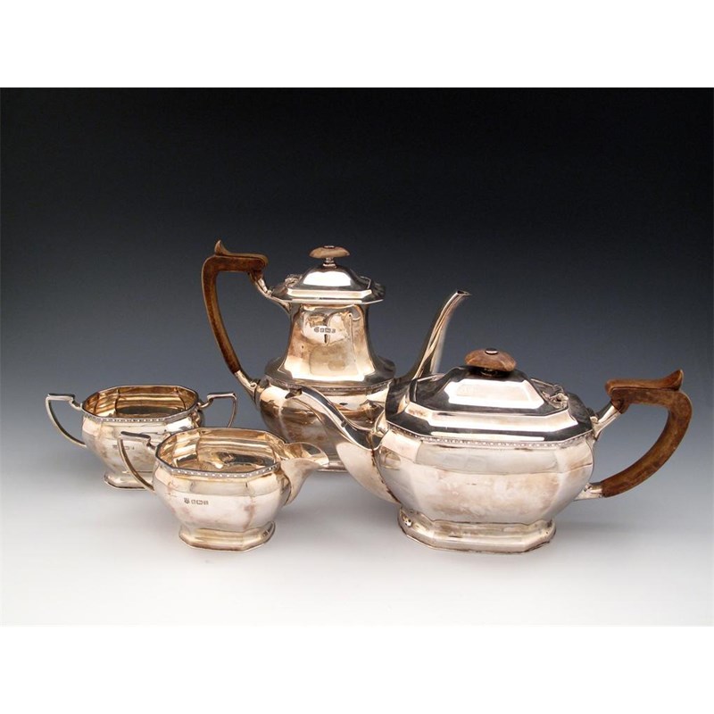shaped rectangular form, scroll handles, stylised borders, domed covers, approx. weight 58oz, (4)