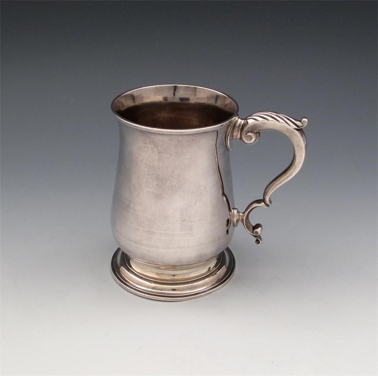 baluster form, leaf capped scroll handle, on a circular foot, height 12cm, approx. weight 10oz.