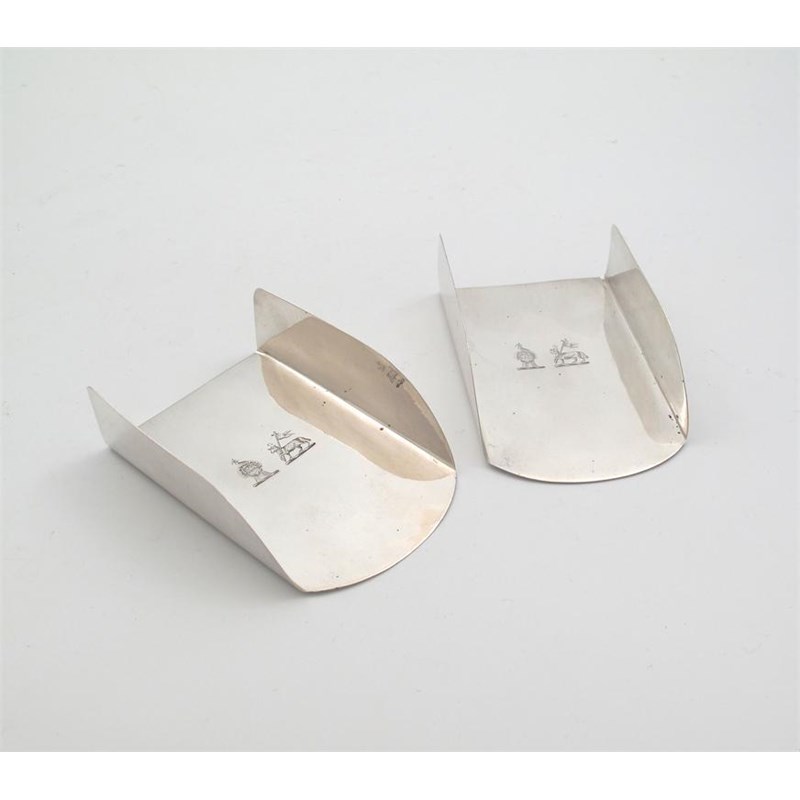 plain form, engraved with two crests, length 9cm, approx. weight 2.5oz. (2)