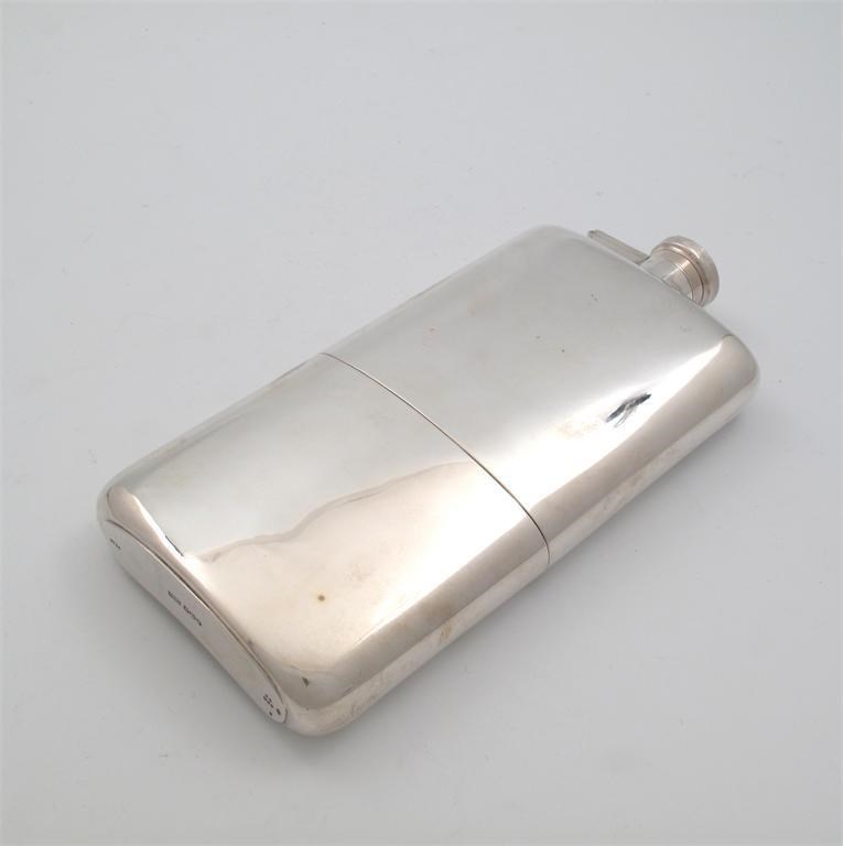 shaped rectangular form, pull-off drinking cup, bayonet fitting hinged cover, length 25cm, approx. weight 23oz.