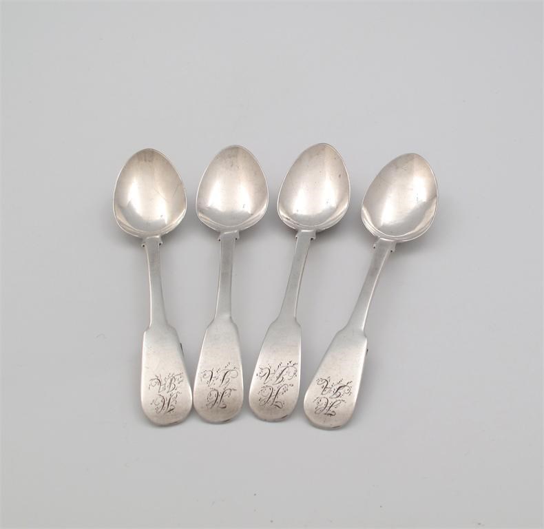 A set of four early 19th century Scottish provincial silver Fiddle pattern teaspoons,